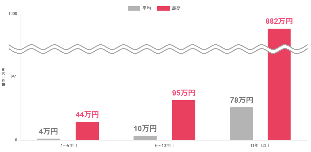 株式付与制度(業績貢献報酬制度・勤続報酬制度)による年次別蓄財実績